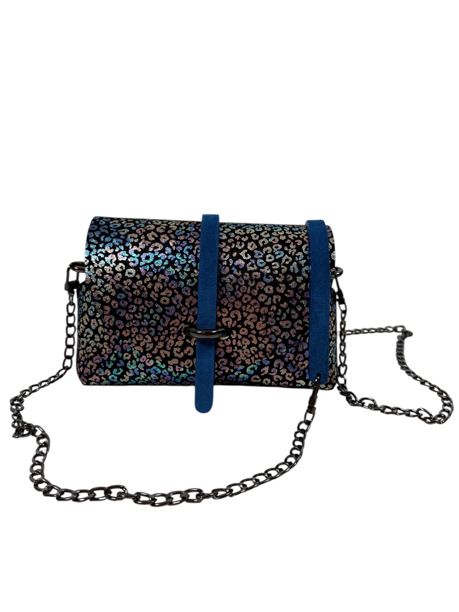 Made of Italian leather, holographic suede calfskin, black background, blue suede calfskin tongue
