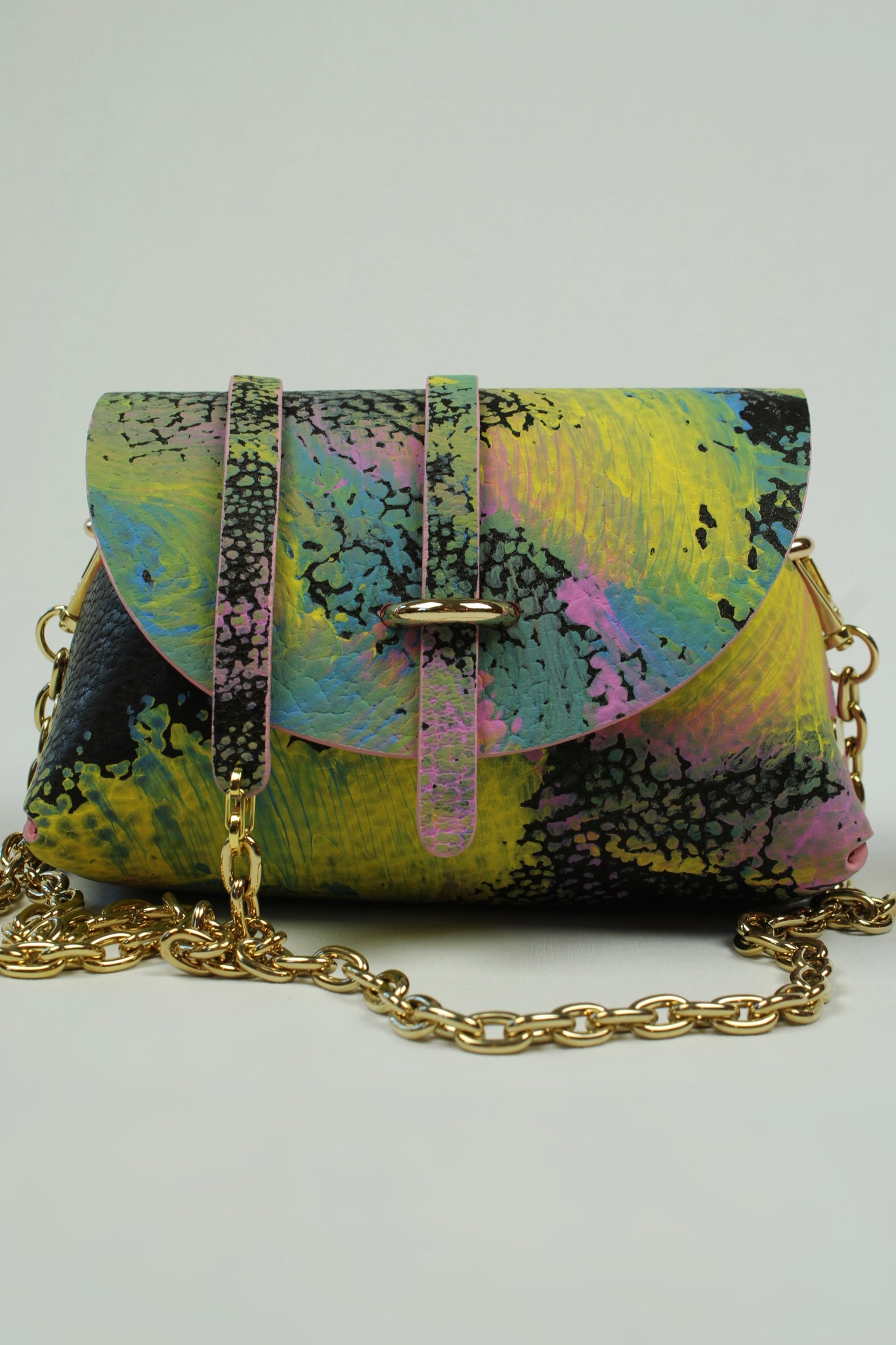 En cuir grainé de taurillons , épaisseur de 2 millimètres , peint à la main