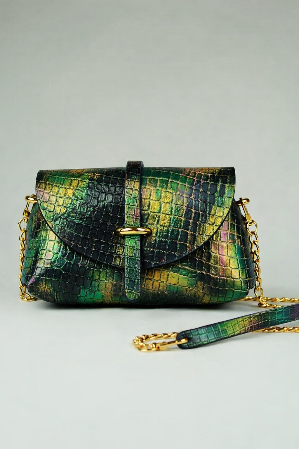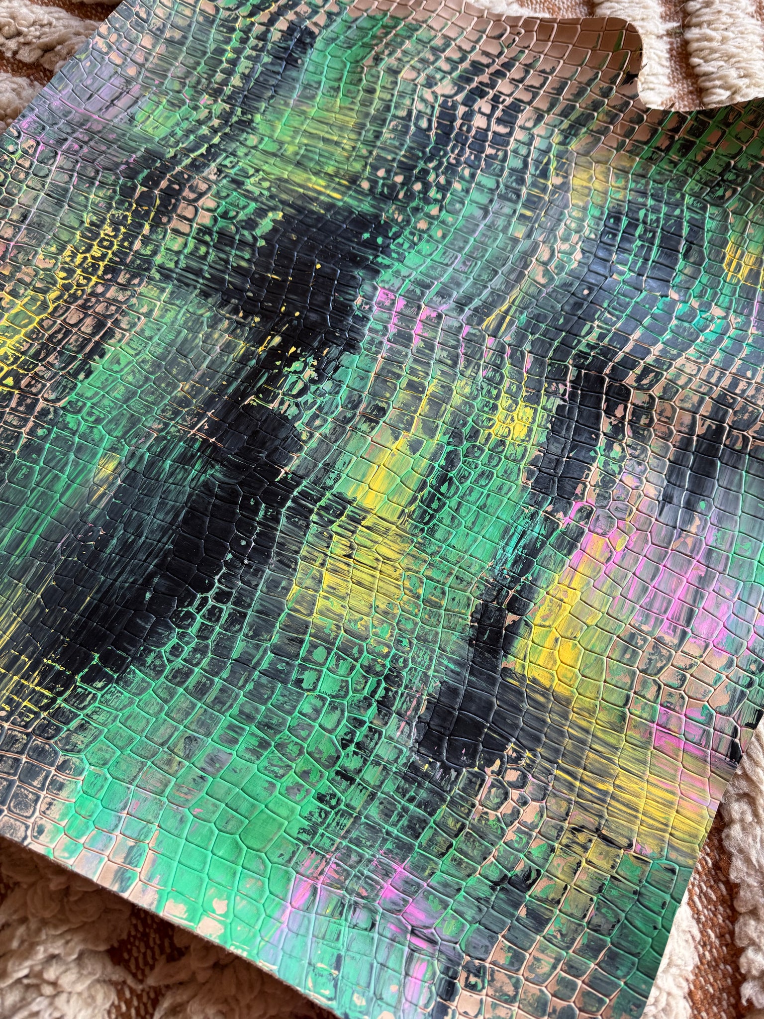 En cuir croco fond noir , entièrement peint à la main