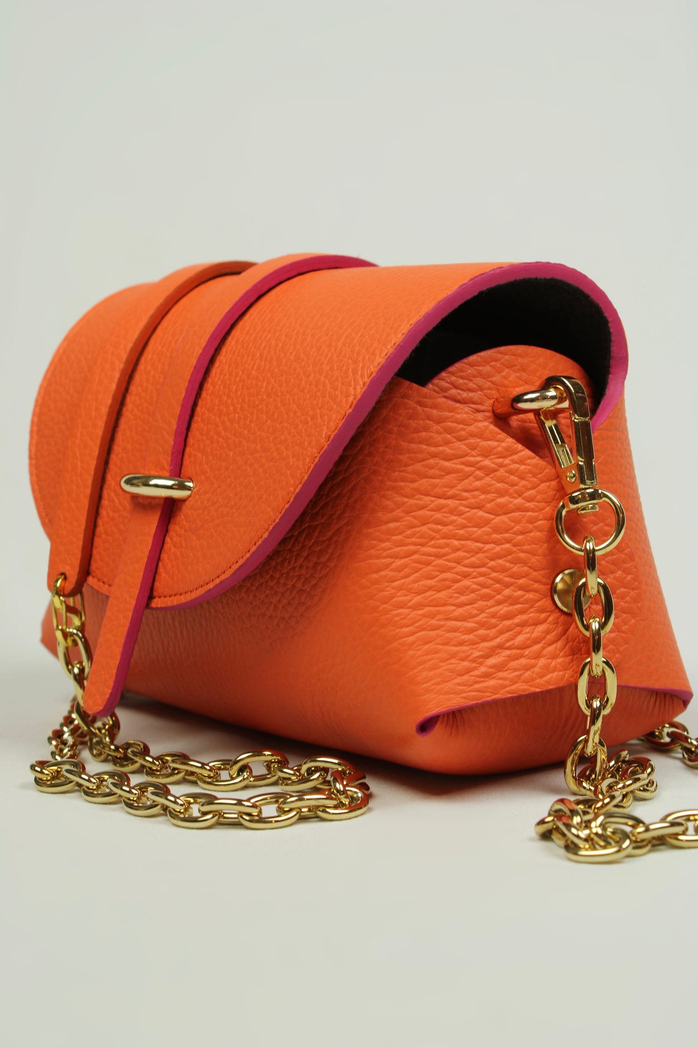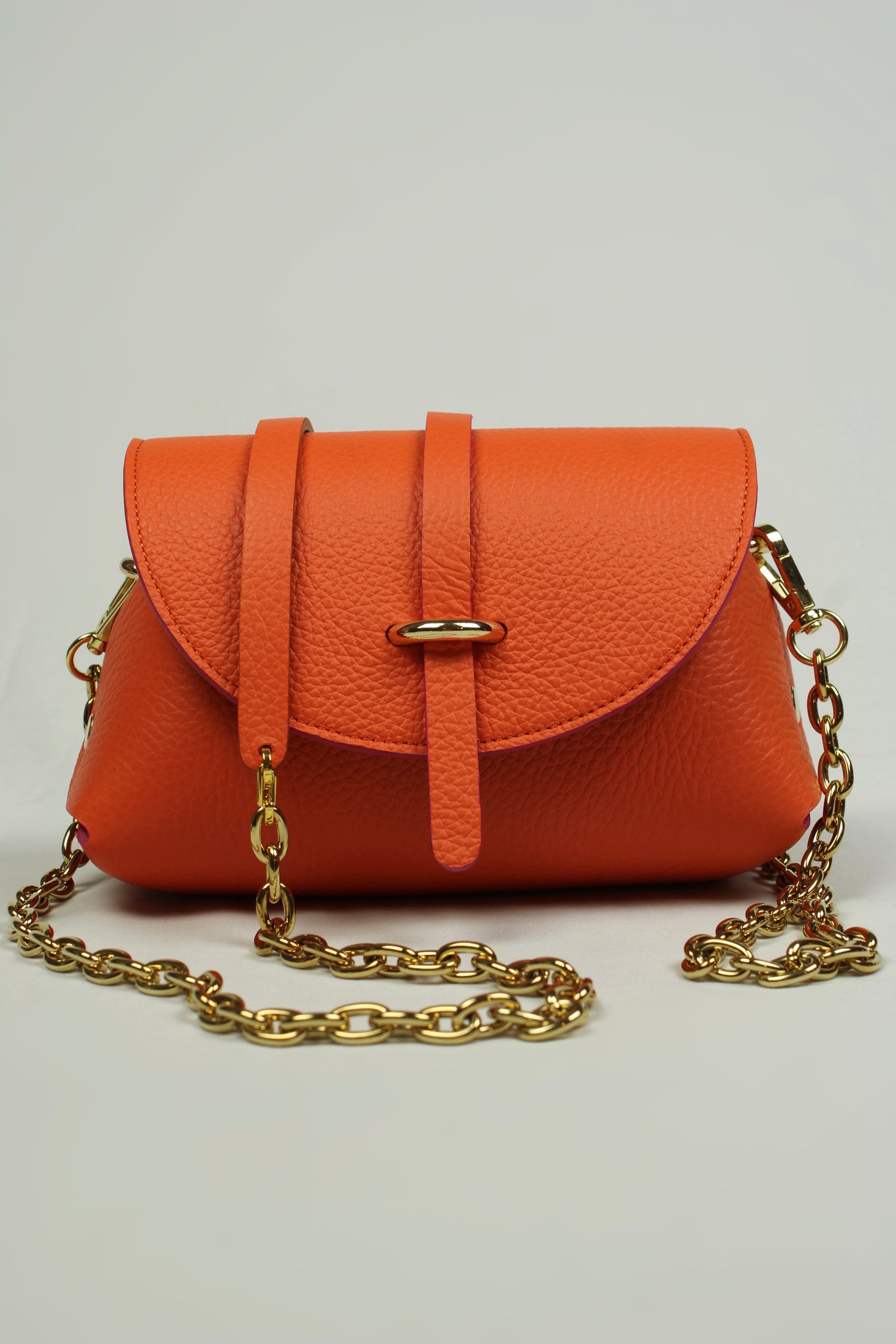 En cuir de veau grainé orange .