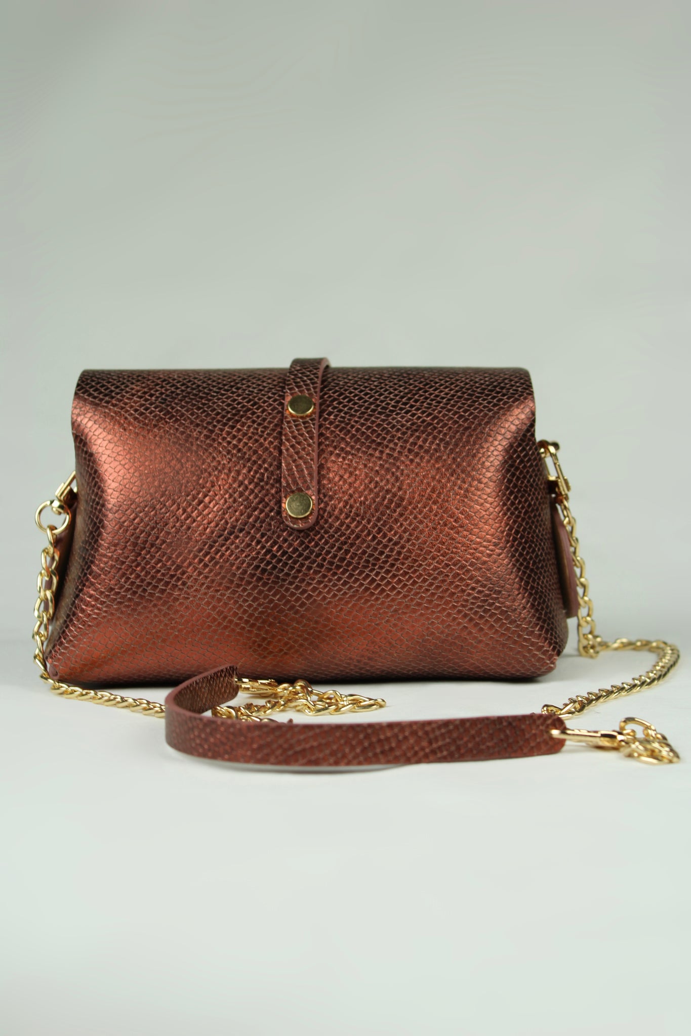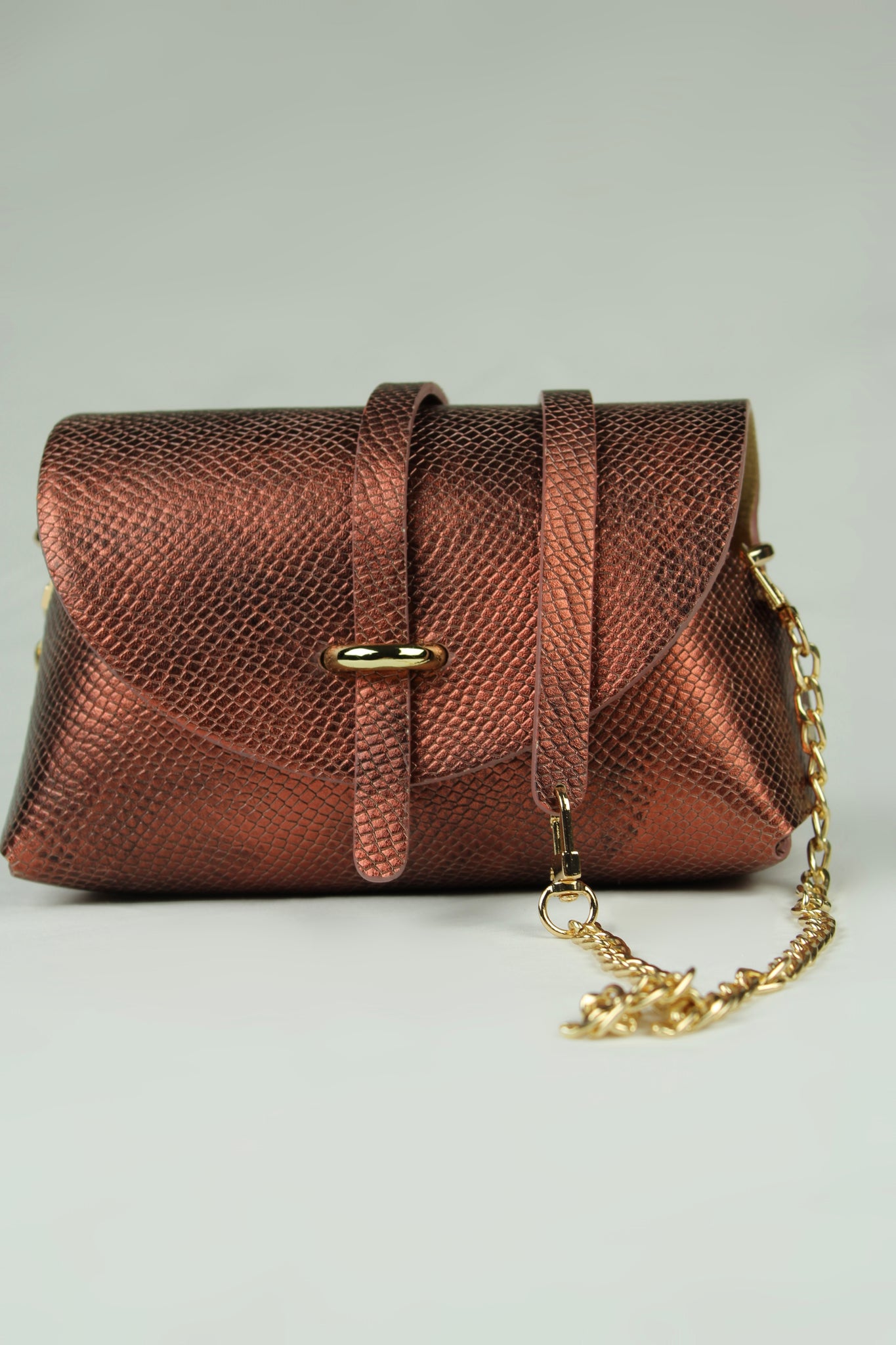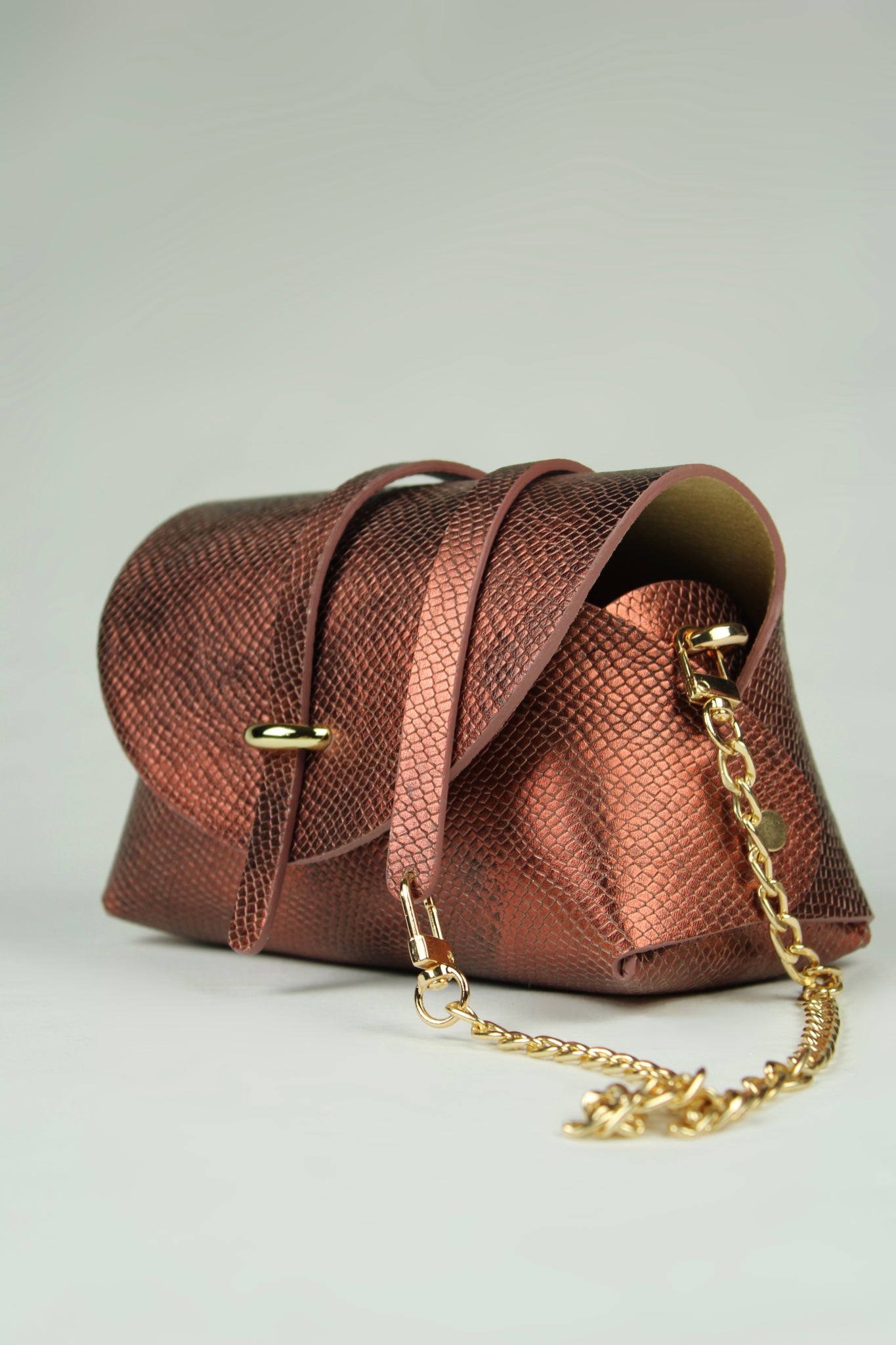 En cuir de python orange rouille cuivré , imprimé chèvre serpent laminé , cuir souple à motif reptile
