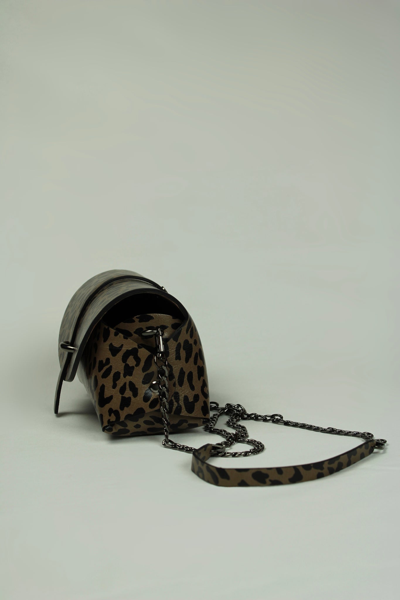 Ce sac se ferme avec une lanière en cuir passant dans une attache en métal noir