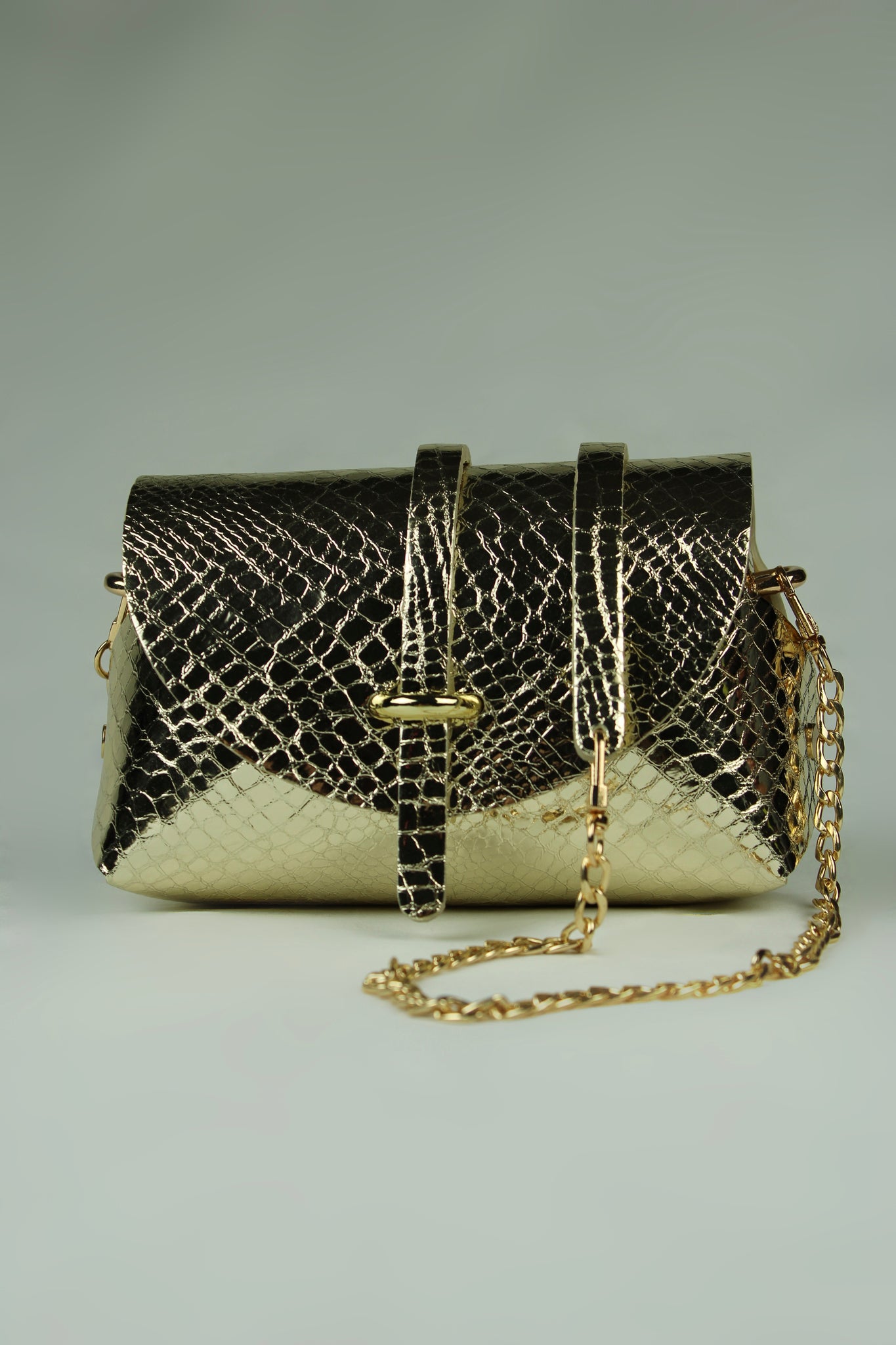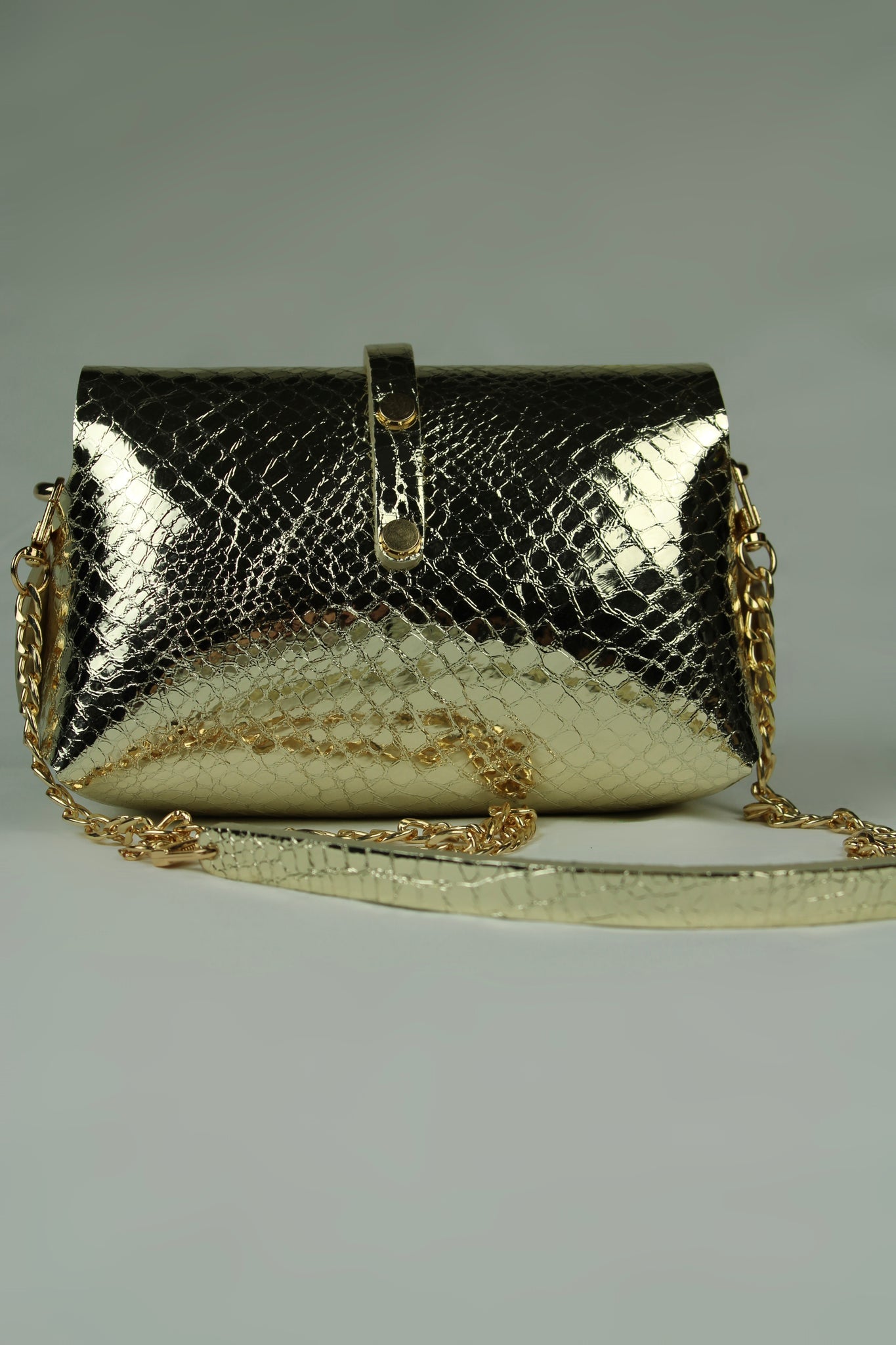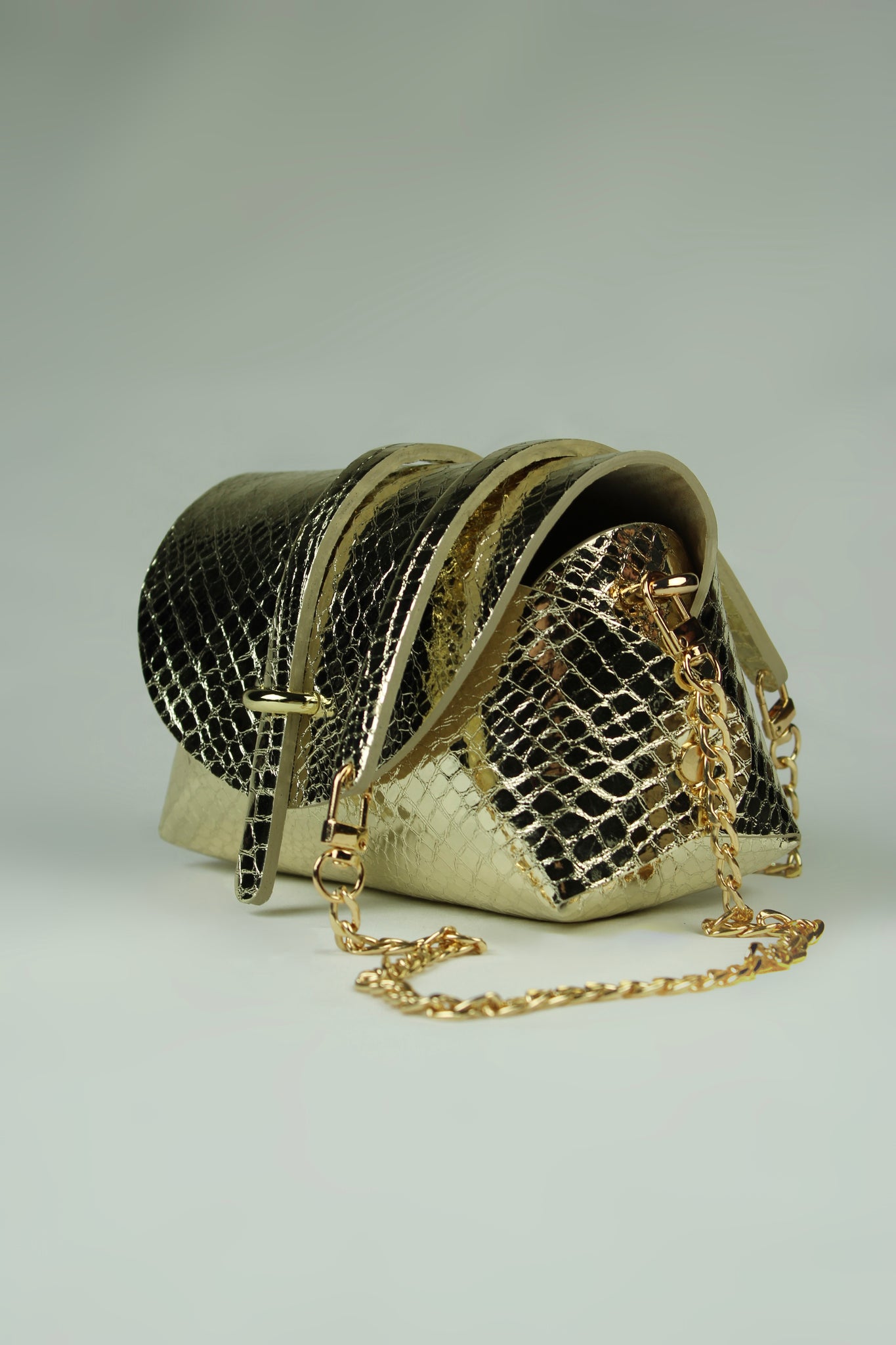 En cuir métallisé reptile doré froissé , chèvre laminé et imprimé python serpent