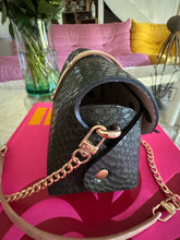 Notre nouvelle merveille est en cuir façon serpent ! Vert foncé ! Sublime !  Une pure beauté avec sa patte nacrée irisée! ! Il est très très beau ! Chaîne en métal dorée !  Tellement chic ! C’est une bombe atomique et nous en sommes très fières ! J’espère que vous aurez envie de le porter à votre tour et de l’adopter et qu’il fera parti de vos indispensables ! Il est unique !  Un bijou !