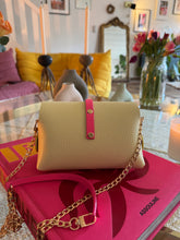 Voici notre troisième merveille , tout en cuir , jaune et rose fluo ! Vous savez bien, la couleur, c’est la vie !!! Il est canon ! Chaîne dorée ! Tellement chic ! C’est une bombe atomique et nous en sommes très fières ! J’espère que vous aurez envie de le porter à votre tour et de l’adopter et qu’il fera parti de vos indispensables ! Il a été fait en petite quantité ! Il y en a 3 !