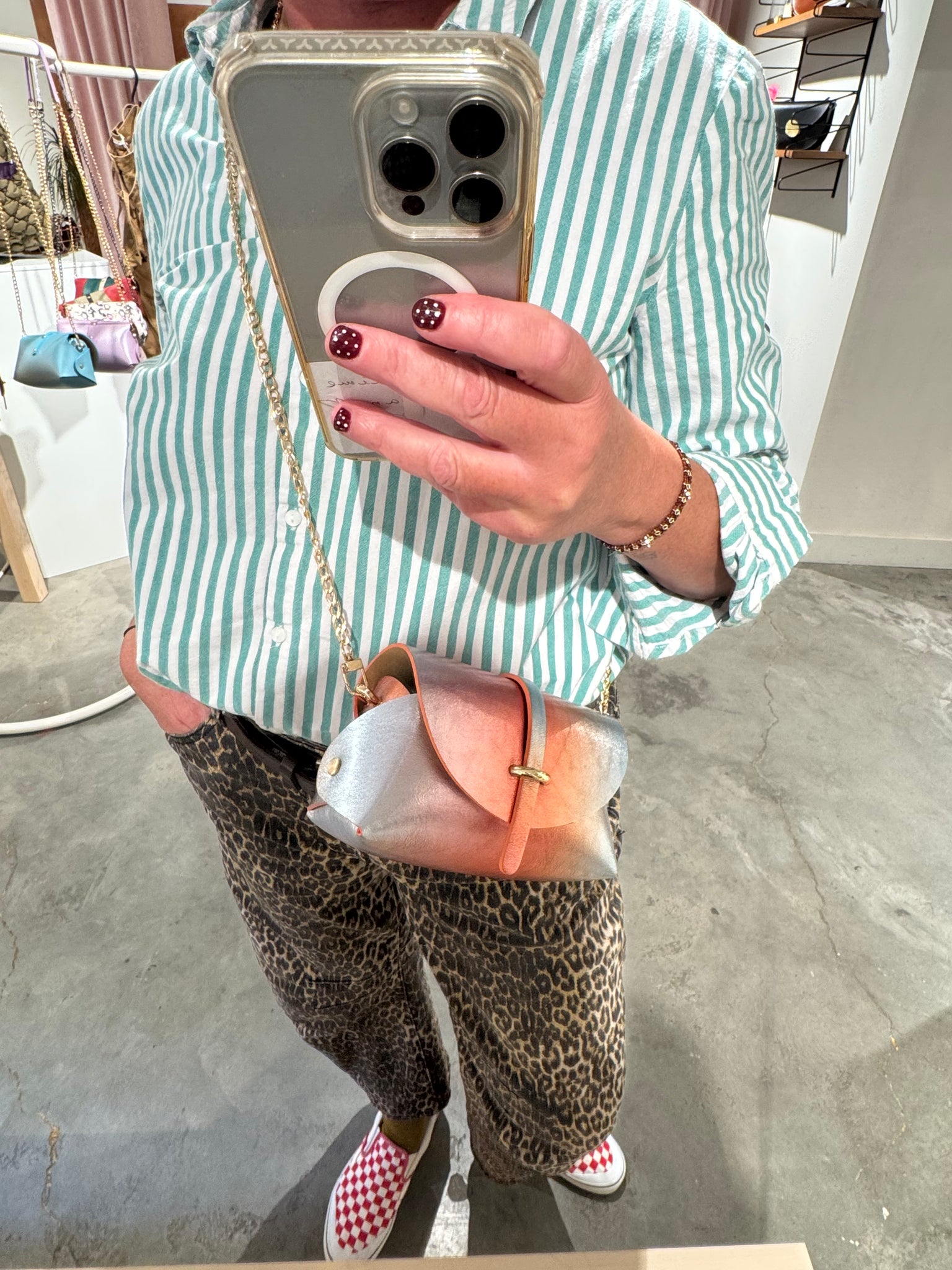 Ce sac aux reflets incroyables , vous accompagnera du soir au matin et vous pourrez y glisser vos essentiels ! Portable , lunettes , rouge à lèvres , clefs , etc …Â