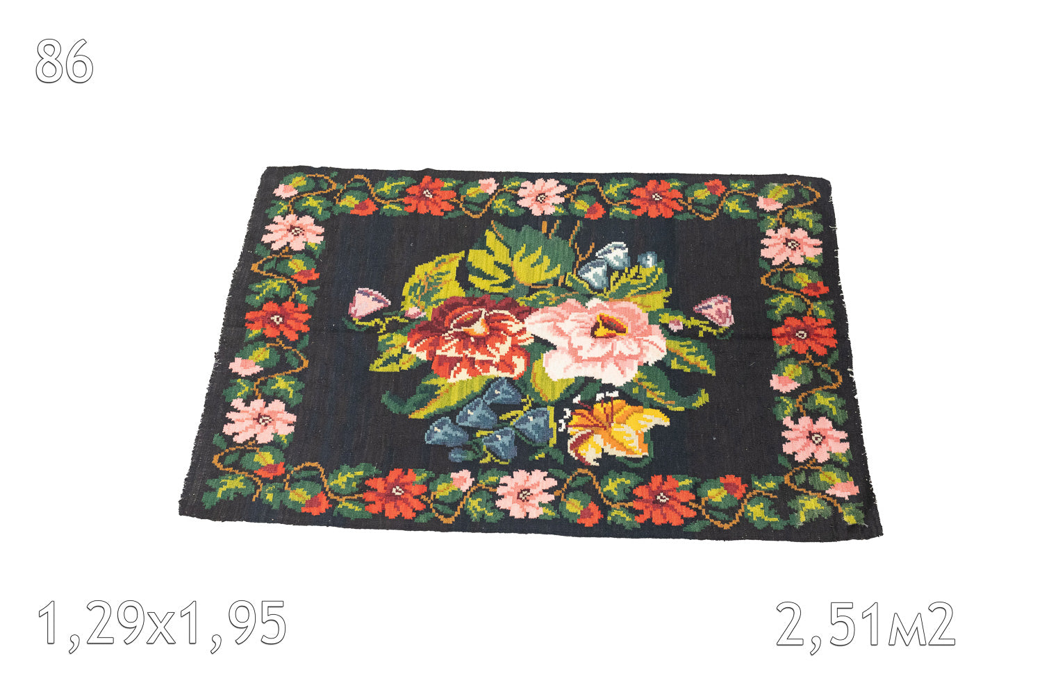 Pièce emblématique de notre nouvelle sélection de tapis moldaves vintage, tissée à la main dans les années 1980. Ce modèle d’origine séduit par l’éclat de ses couleurs et la richesse de ses motifs floraux, véritables signatures de l’artisanat moldave d’avant la chute du mur de Berlin.